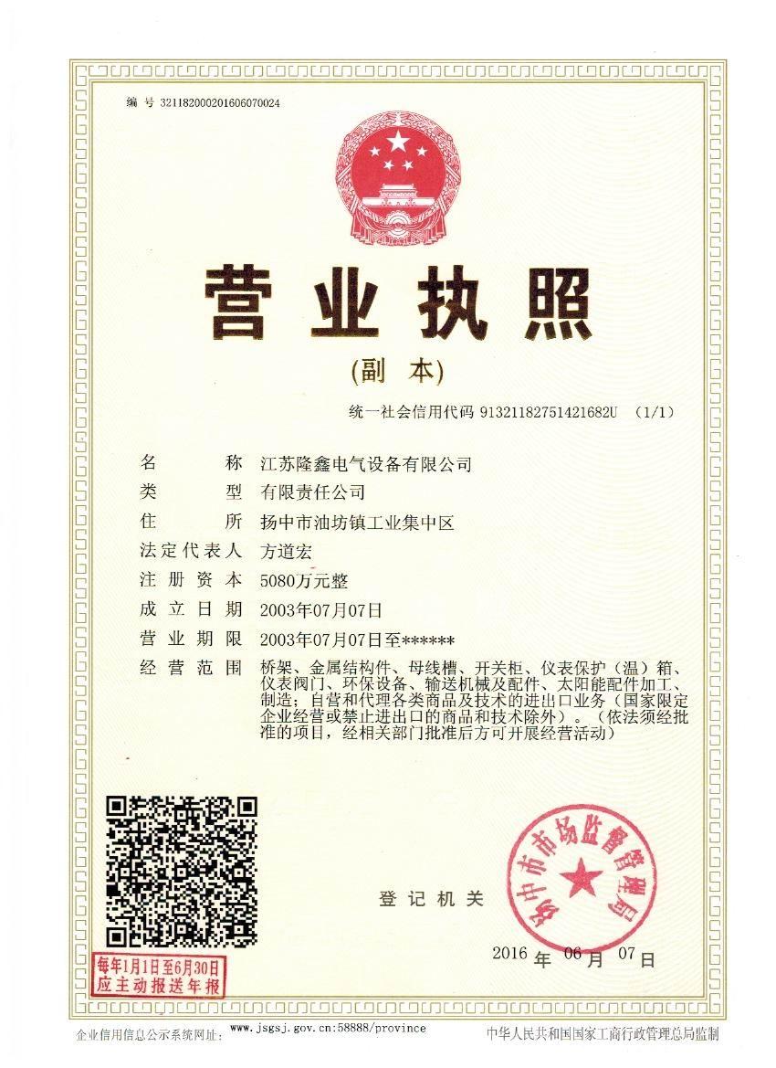 江蘇隆鑫電氣設(shè)備有限公司(原揚中市隆鑫電器設(shè)備有限公司)位于風(fēng)景秀麗的江南古城 ---- 鎮(zhèn)江東部揚子江畔,水陸交通便利。 本公司是中石化網(wǎng)絡(luò)成員企業(yè),是揚中橋架企業(yè),工業(yè)管道閥門、儀表管配件、母線槽、匯線橋架、玻璃鋼制品的專業(yè)生產(chǎn)廠家。 我公司一貫以經(jīng)營以管理為保證、以科技進(jìn)步為動力,使產(chǎn)品的市場占有率不斷提高,公司正持續(xù)、穩(wěn)步、健康地向前發(fā)展,秉循“創(chuàng)造完美、服務(wù)用戶、奉獻(xiàn)社會”的經(jīng)營觀念,本公司生產(chǎn)的儀表管件及閥門系列產(chǎn)品、母線槽、電纜橋架幾乎覆蓋全國31個省、市、自治區(qū)的化工、冶金、交通、輕...